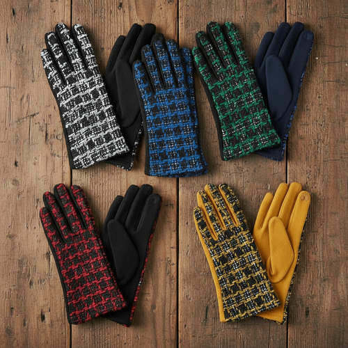 Women's Tweed Patterned Touch Gloves | Assorted Colors | ONE SIZE