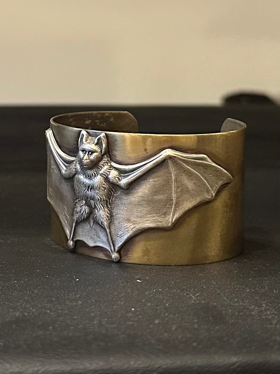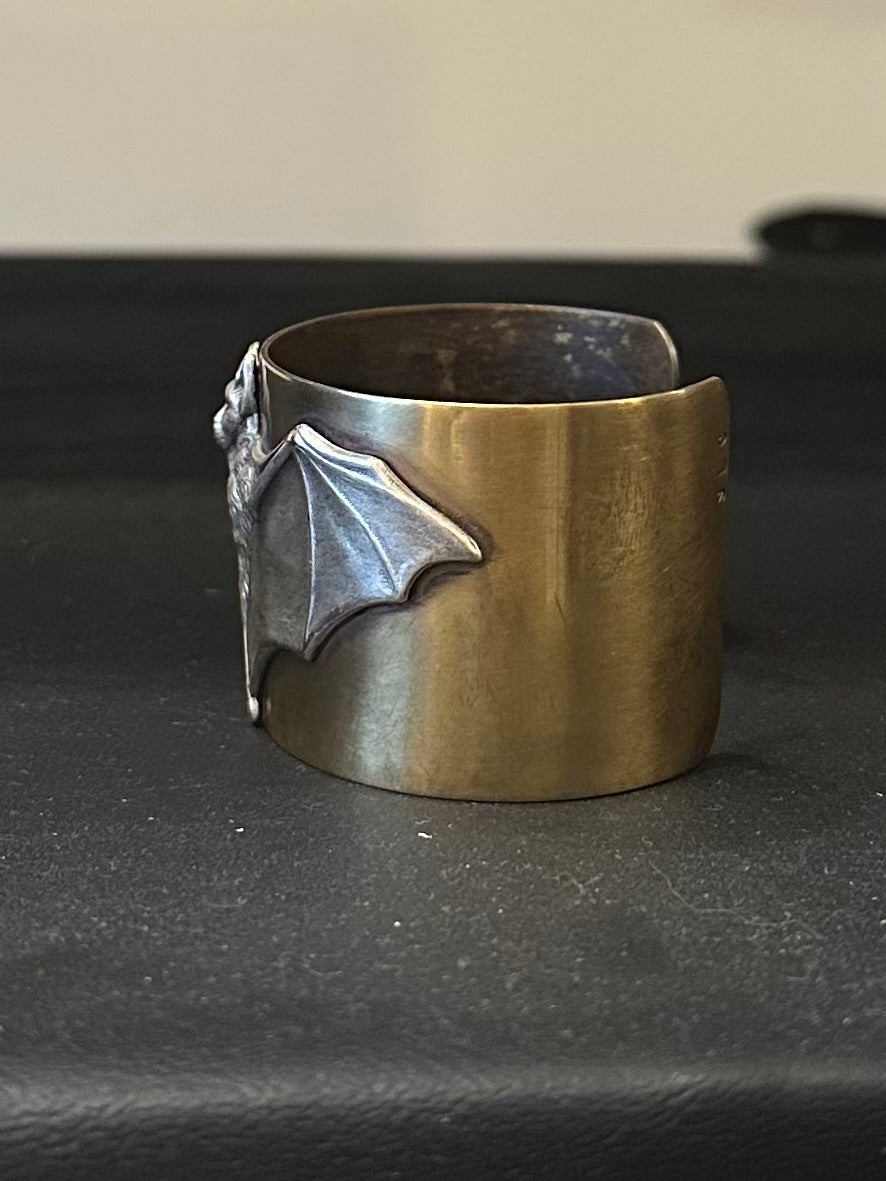 Handmade Gothic Solid Brass Bat Wide Cuff Bracelet - Carmilla