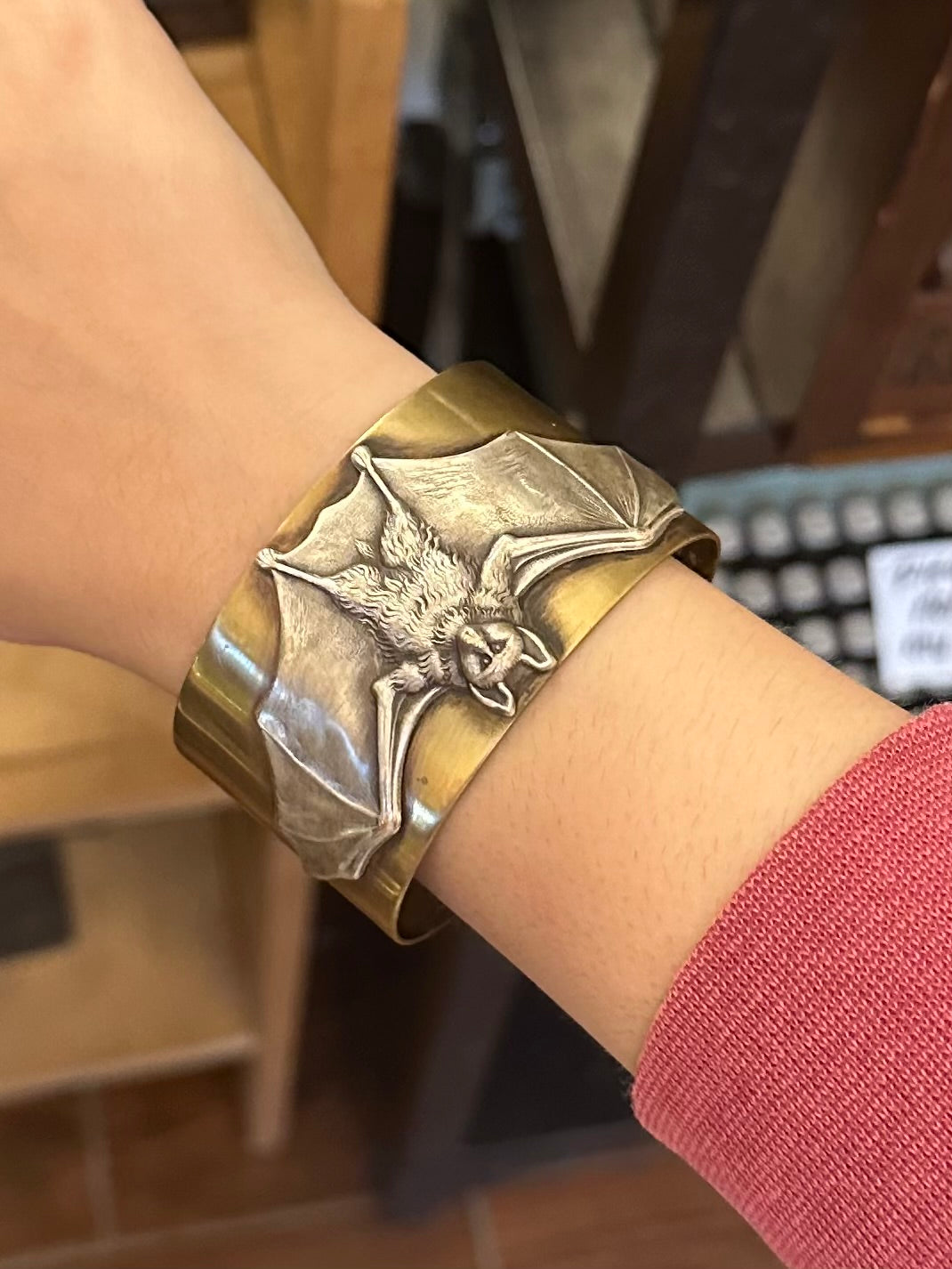 Please see all photos. This is the actual bat cuff that you will receive.