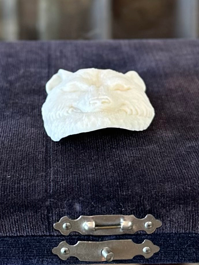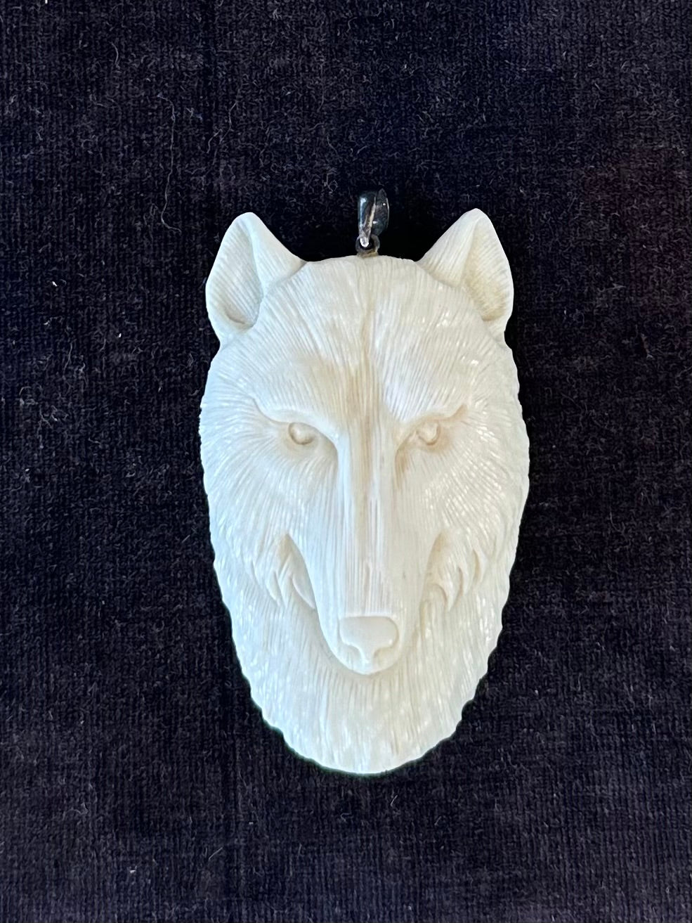 OOAK One of a Kind Handcarved Bone Artisan Wolf Face Wolf Head Pendant