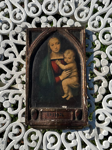 Vintage Midcentury Raffael Madonna del Granduca Florentine Virgin Mary and Child Wood Wall Decor