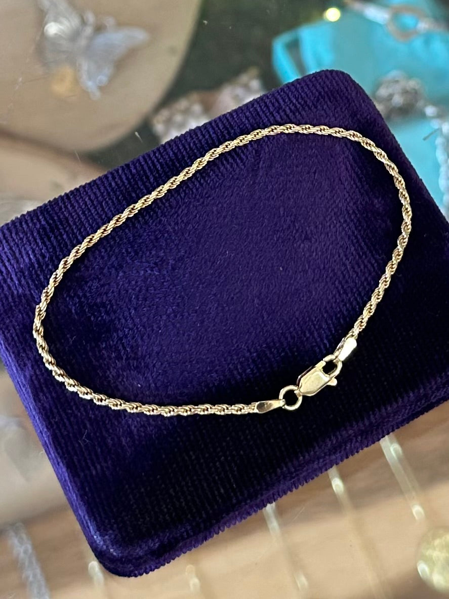 Vintage Gold Plated Sterling Silver 925 Rope Chain Bracelet Unisex 7.25”