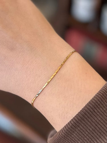 Dainty Solid 14K Yellow Gold Snake Box Chain Bracelet Italy 7.4”
