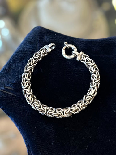 Vintage Hallmarked PR Export Italy 925 Sterling Silver Byzantine Link Bracelet Sailor Clasp Unisex 7.4”