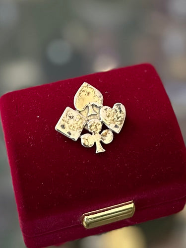 Vintage Signed Leonore Doskow Handmade Sterling Silver Card Suits Unisex Brooch Club, Diamond, Heart, & Spade