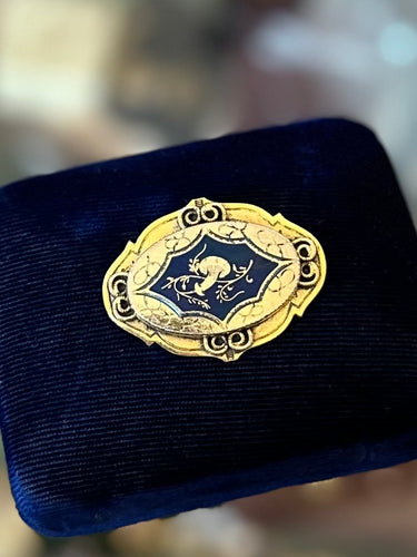 Vintage Midcentury Signed FREIRICH French Gold Plated & Navy Blue Enamel Mushroom Oval Brooch