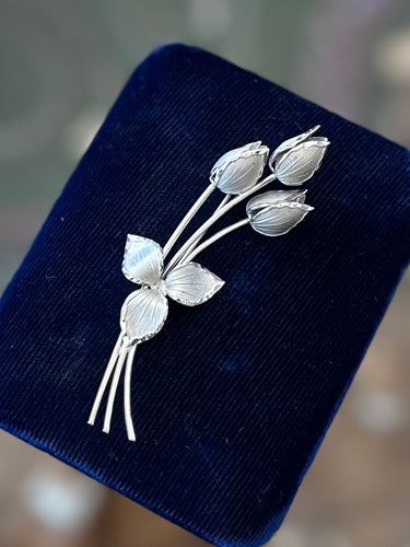 Vintage Midcentury Signed Bond Boyd Sterling Silver Floral Tulip Brooch Pin