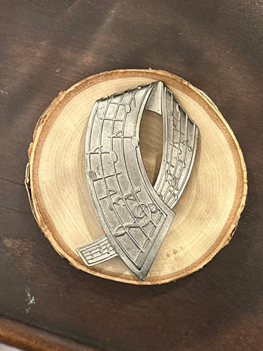 Vintage 1980s Signed JJ Jonette Silver Tone Music Note Music Sheet Ribbon Brooch 1988