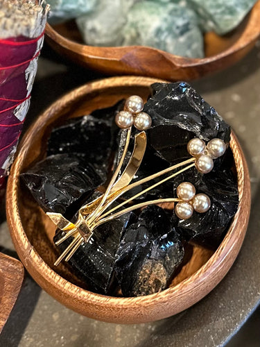 Vintage 1930s 1940s Gold Sterling Silver By Coro Pearl Bouquet Brooch Mid Century