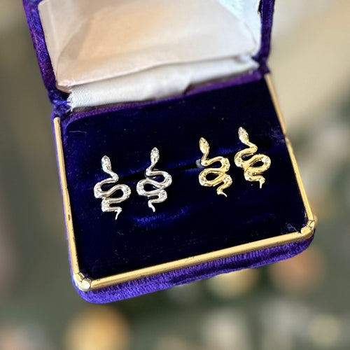 Snake Stud Earrings with Cubic Zirconia | Gold Tone or Silver Tone
