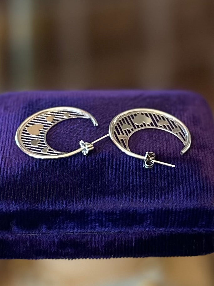 Vintage 1990s Sterling Silver Heart Open Hoop Earrings “Hearts in a Cage” Signed BEAU