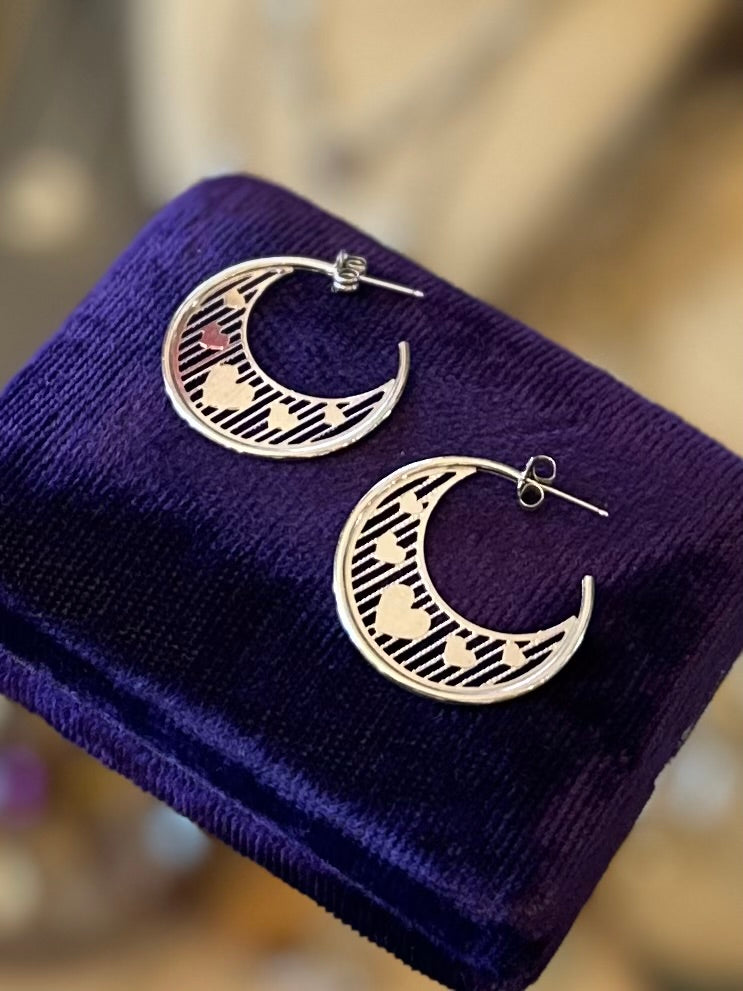 • Load image into Gallery viewer, Vintage 1990s Sterling Silver Heart Open Hoop Earrings “Hearts in a Cage” Signed BEAU