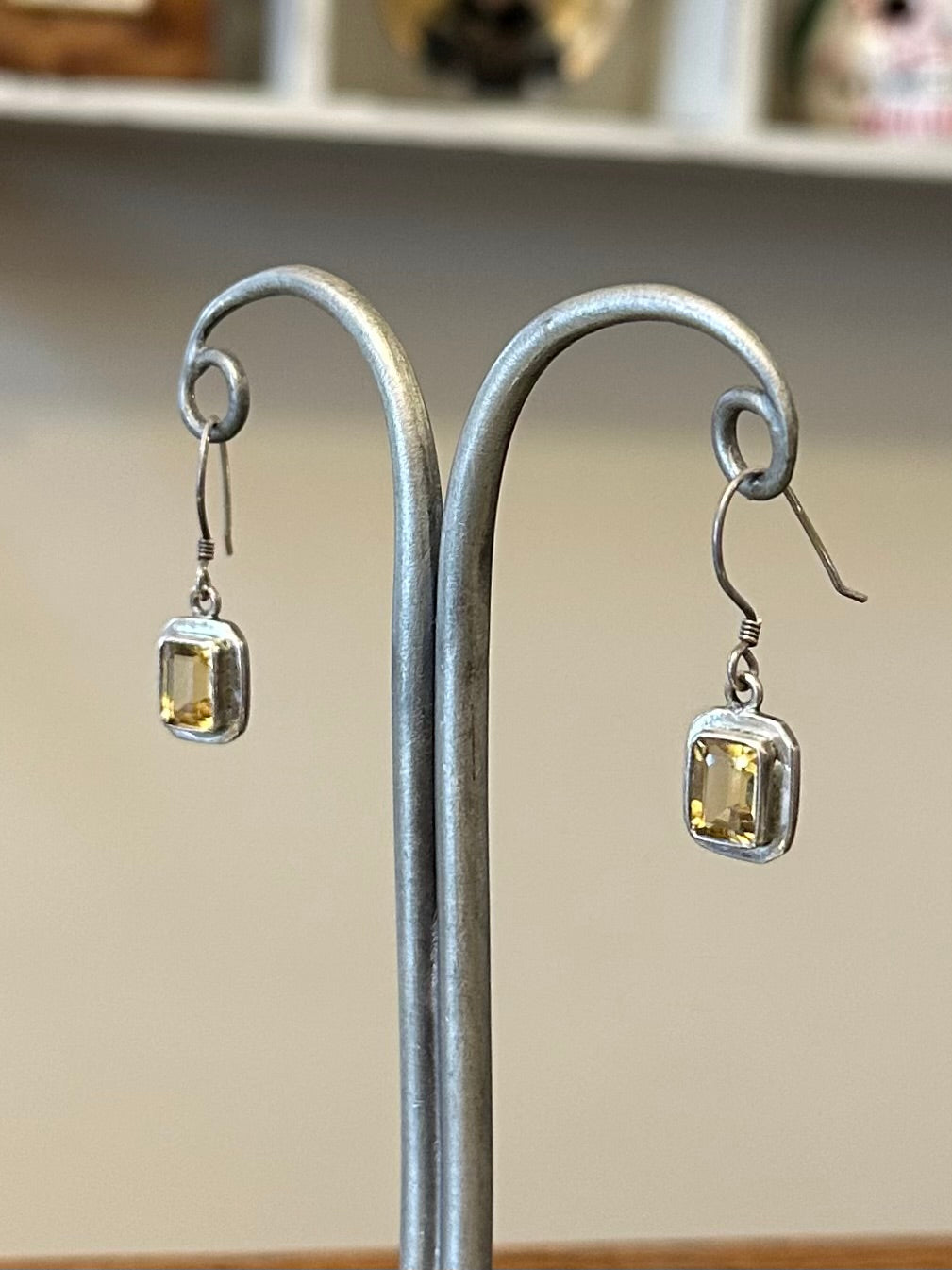 • Load image into Gallery viewer, Vintage Sterling Silver & Faceted Citrine Rectangular Dangle Drop Earrings