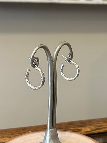 Vintage Sterling Silver 925 Textured Open Hoop Earrings Silver Hoops Minimalist