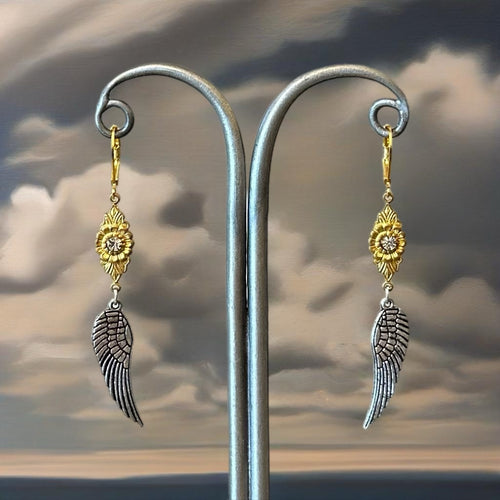 “MESSENGER” Handmade Two Tone Angel Wing Dangle Earrings