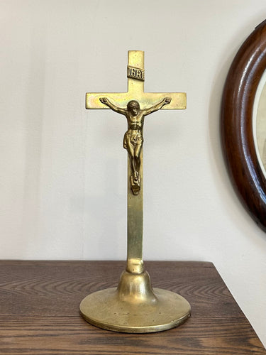 Vintage Brass Tabletop Standing Crucifix INRI Cross Jesus Christ 8.75” Religious Decor
