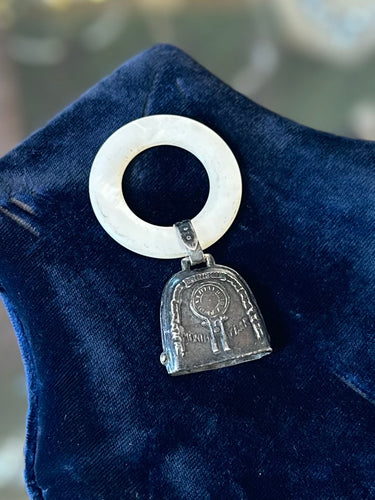 Vintage Sterling Silver & Mother of Pearl Birth Record Month Year Baby Rattle Original Patina