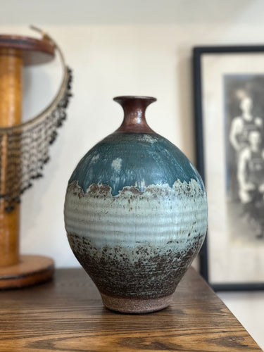Vintage Mid Century Stoneware Art Pottery 8.5" Bulbis Bud Vase Artist Signed