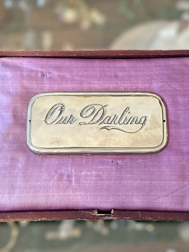 Vintage Parsons’ Casket Hardware Co. Our Darling Nickel Metal Casket Name Plate Silver Tone 4.7x2.2 Mourning