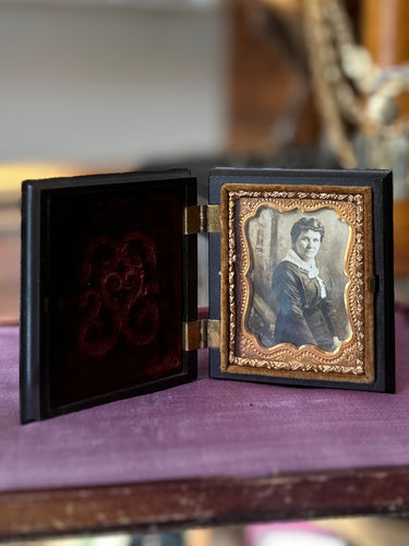 Antique Woman Daguerreotype Ambrotype Gutta Purcha Case Burgundy Velvet Photograph Portrait