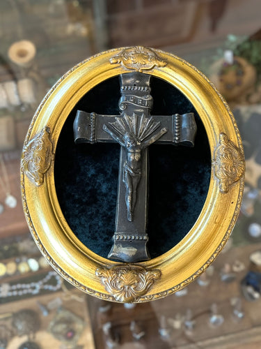 9.5" Vintage Heavy Metal Casket Crucifix Parsons WCH Co. Antique