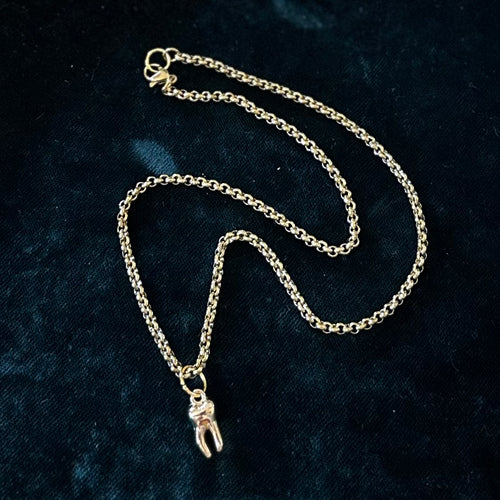 ‘TOOTH STATUS’ Gold Tone Pendant Necklace Rolo Chain 16.25”