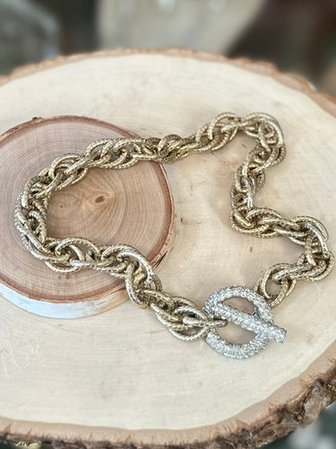 Vintage Signed JOMAZ Two Tone Chunky Rhinestone Toggle Clasp Choker Chain Link Necklace 15.25”