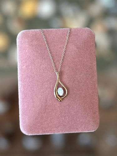 Vintage Signed KREMENTZ Gold Plated Delicate Dainty Genuine Opal Teardrop Pendant Necklace 16.5”