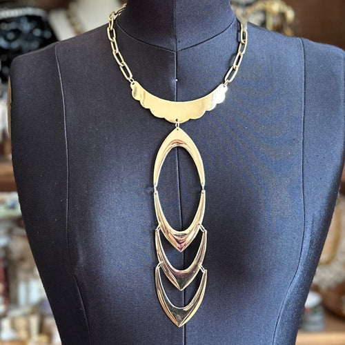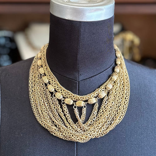 Vintage Midcentury Gold Tone Multi Strand Chain Statement Necklace