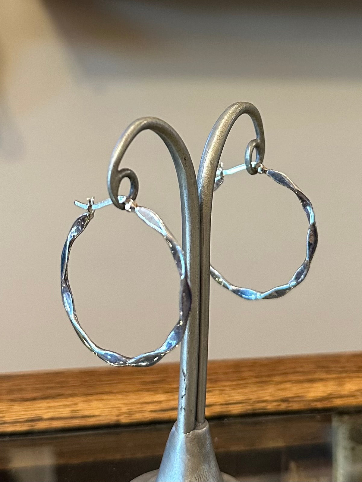 Vintage sterling silver hoop earrings with an interesting flat twist design.