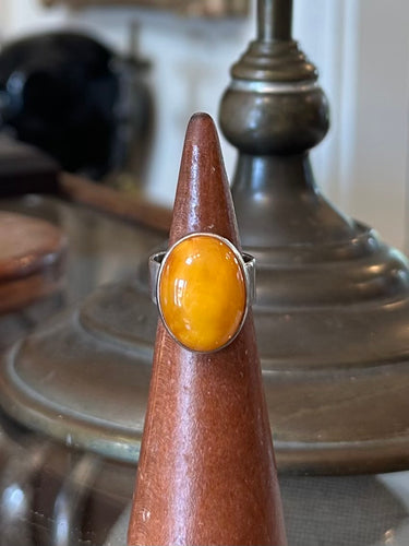 Vintage Sterling Silver Butterscotch Egg Yolk Baltic Cabochon Statement Ring US Size 7