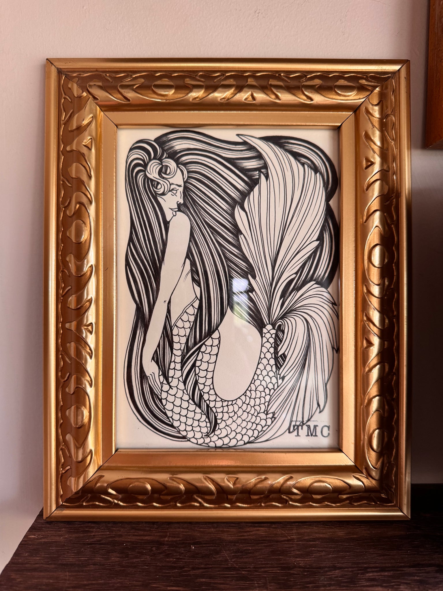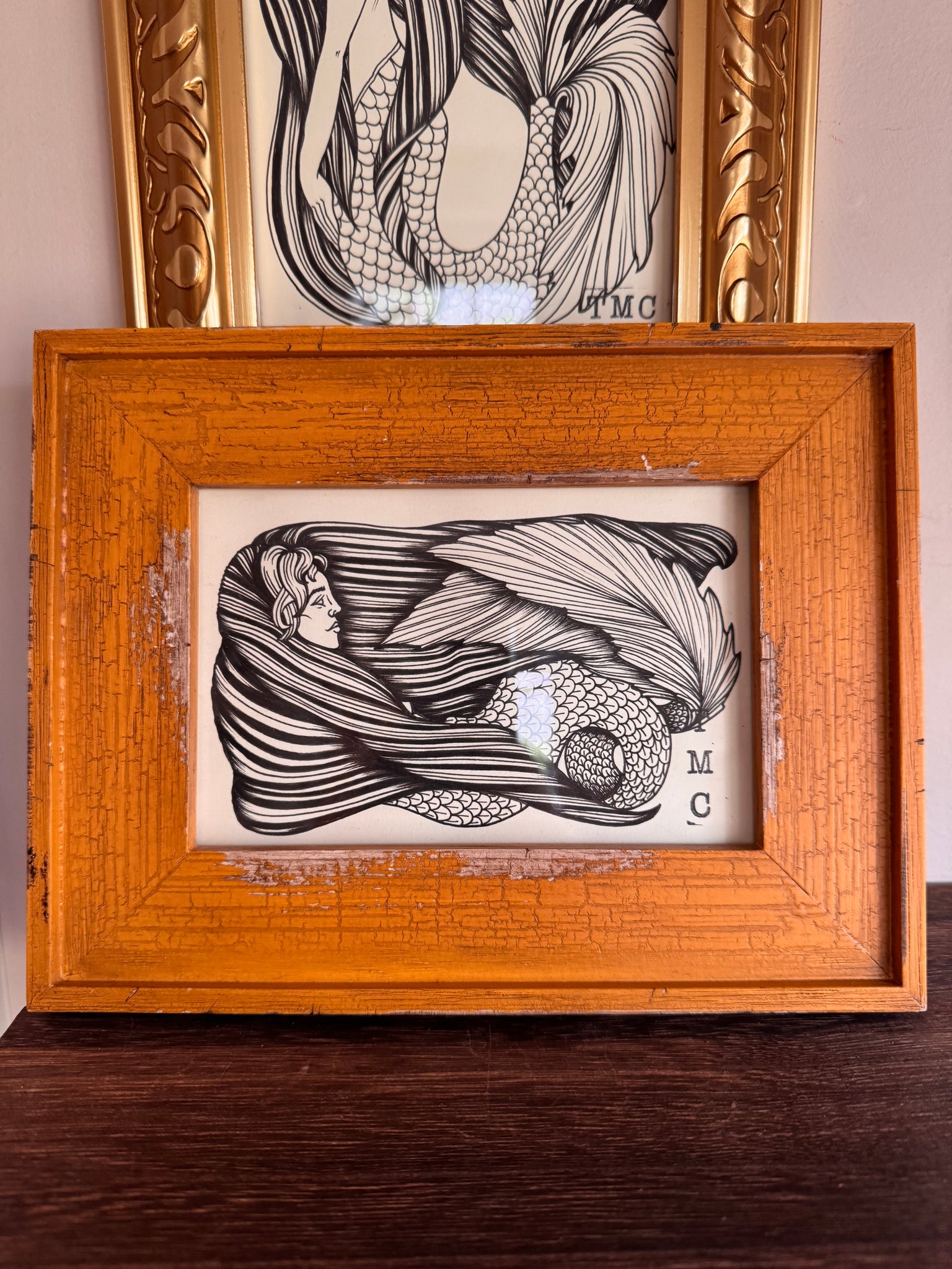 Hello there! My name is Christina, I am a local Long Island artist working under the name Three Moon’s Company. I specialize in paintings, ink drawings, and wood cut art. Most of the frames used in my work is locally sourced vintage and given a second life. You can find a wide variety from framed pieces, small dolls, tote bags, plush wall hangings and hand cut wood art. Depending on the season, I tend to update a curated set of works so always keep an eye out for certain rotations! Each piece is from original concept and the idea is to be a great addition to any collection or gallery wall.